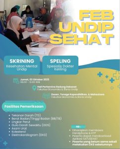 Semarang – The Faculty of Economics and Business, Universitas Diponegoro (FEB UNDIP), held a health program titled “FEB UNDIP Sehat” for lecturers, administrative staff, and