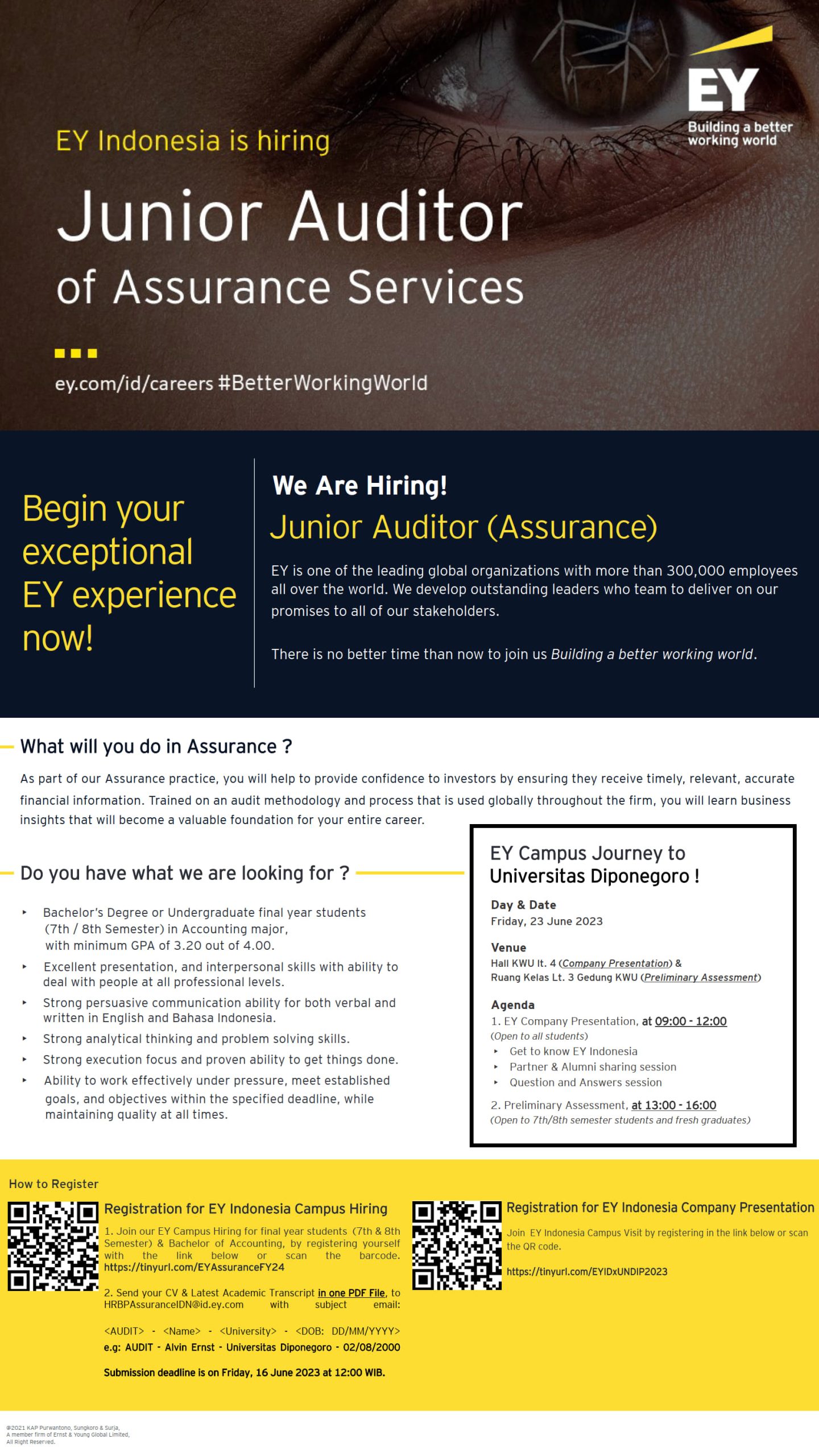 Bergabunglah dengan EY Campus Hiring untuk mahasiswa tingkat akhir (Semester 7 & 8) & Sarjana Akuntansi.